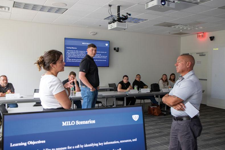 “The interactive MILO tool allows students to focus on a civilian’s cues, adjust personal behavior appropriately, and manage escalation if and when it arises,” explains Cuccaro pointing to a classic example: If a civilian has a crime to report, they may not want to talk about their mental health—and vice versa. Nuances in the MILO technology allow for scenarios to be paused and discussed along the way which facilitates debriefing.